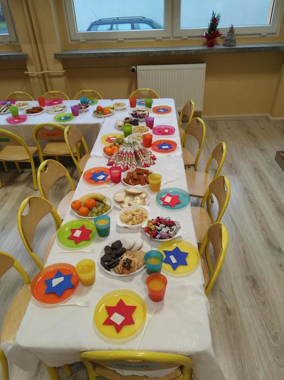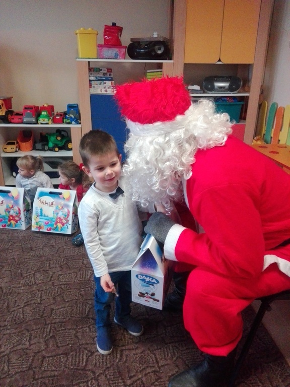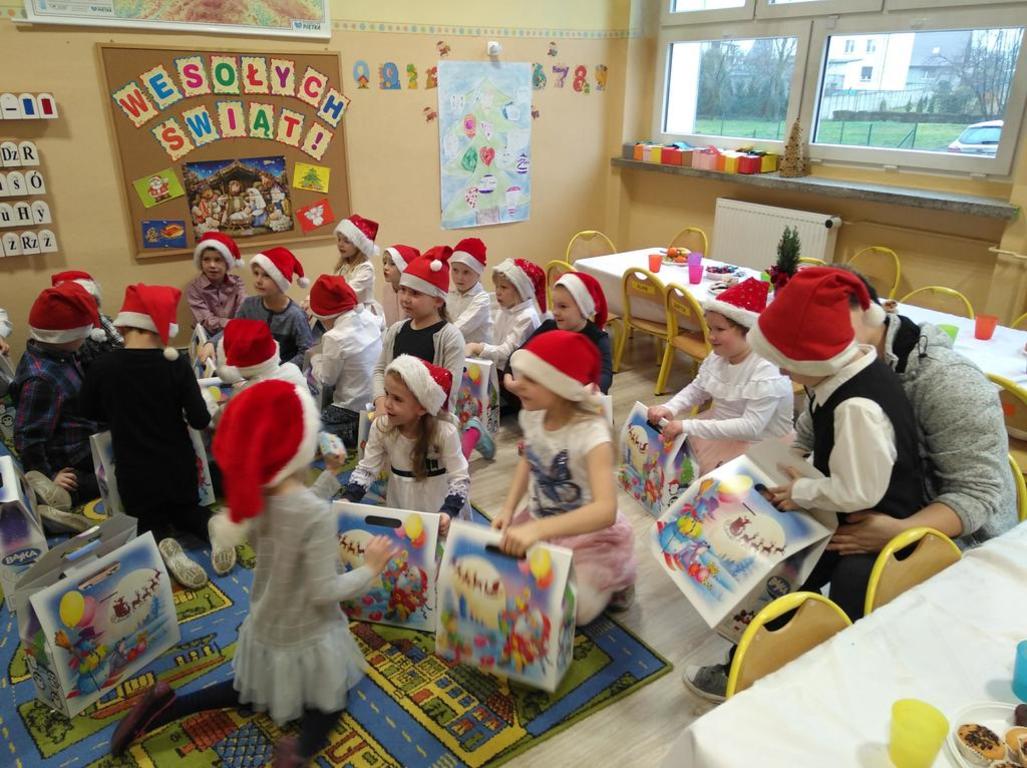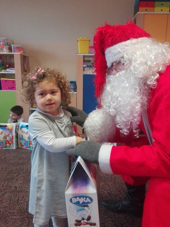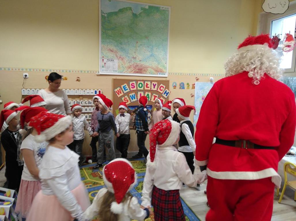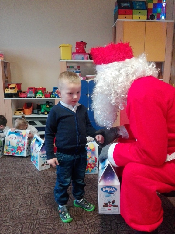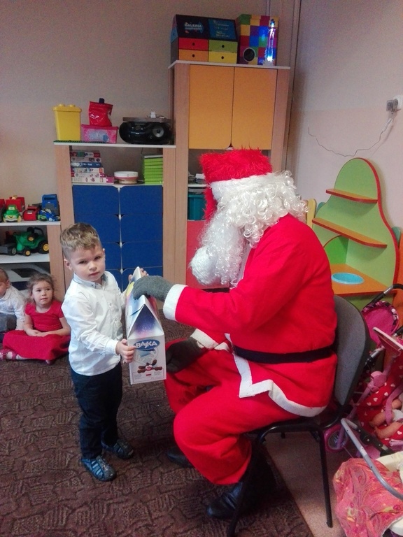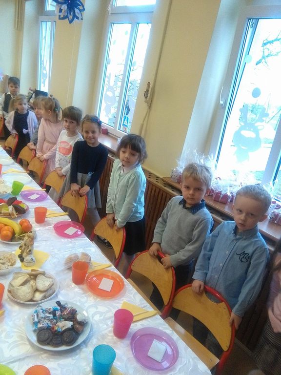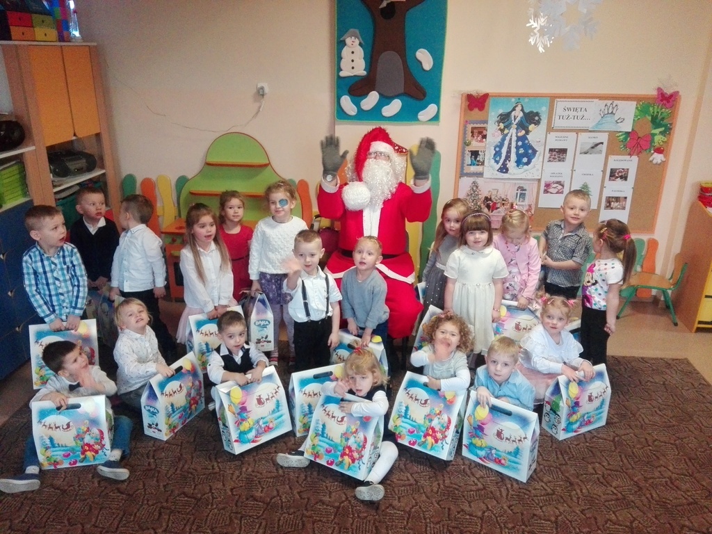 Dzieci smakowały rybę, pierogi z kapustą i grzybami i inne smakołyki. Takie podniosłe chwile nie tylko utrwalają dzieciom znajomość tradycji i zwyczajów świątecznych, lecz również, co najważniejsze wzmacniają bliskie i serdeczne relacje. Potem, każdą z grup, odwiedził długo wyczekiwany Gwiazdor. Dzieci witały przybyłego gościa z uśmiechem, chętnie śpiewając piosenki i odpowiadając na jego pytania. Radości z otrzymanych prezentów nie było końca.
