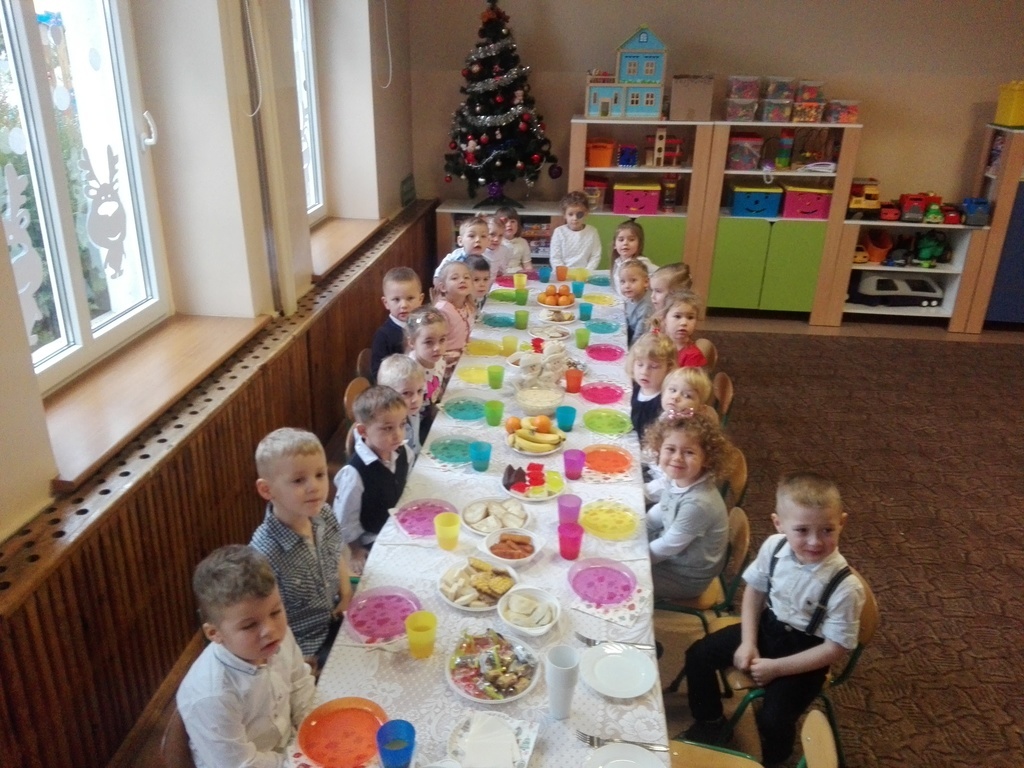 W czwartek 21.12.2017r. dzień w przedszkolu był wyjątkowy, bo świąteczny. I już tradycyjnie w tym dniu wszystkie przedszkolaki ubrane były w piękne stroje. Wspólne kolędowanie, dzielenie się opłatkiem, jak również rozmowy przy wigilijnym stole wprowadziły wszystkich w świąteczną atmosferę, pełną radości, nadziei i życzliwości.