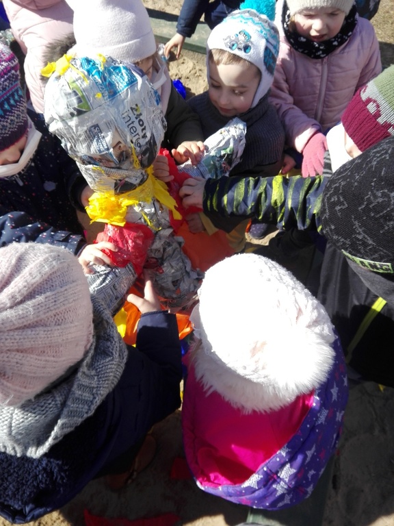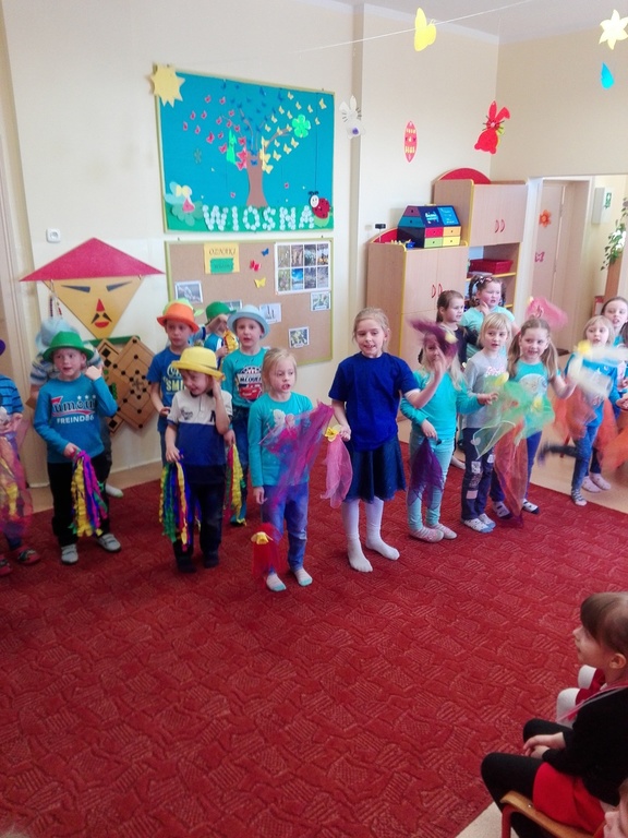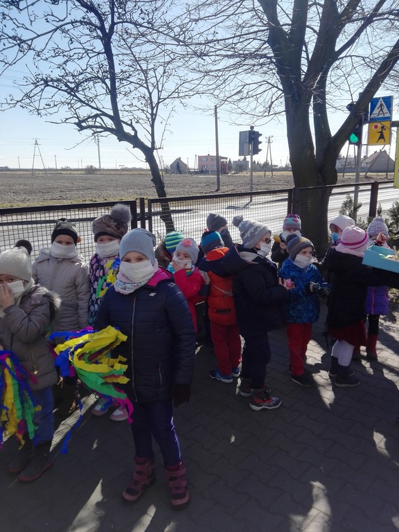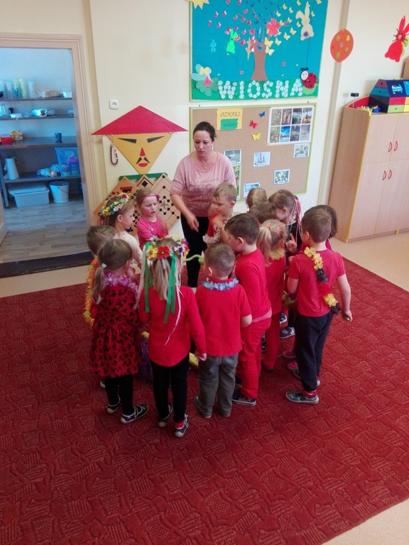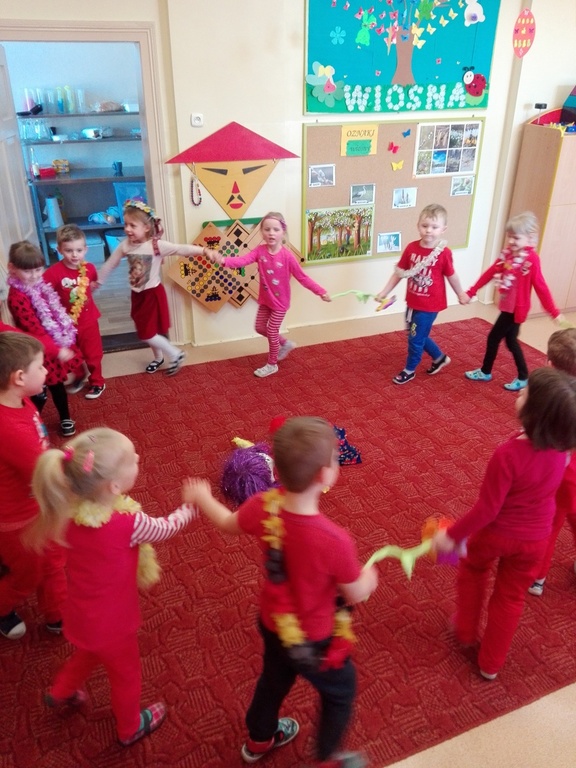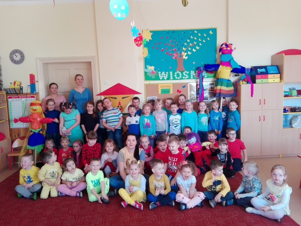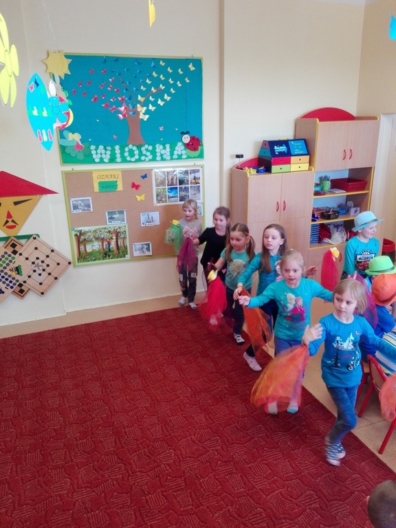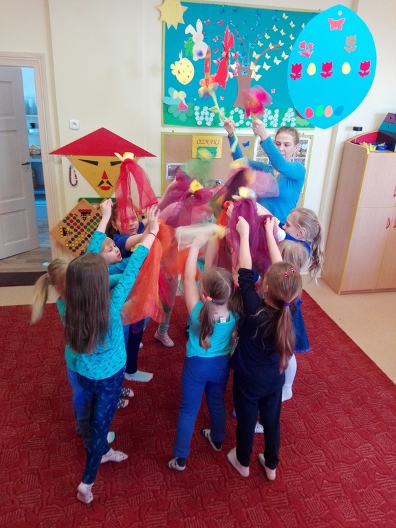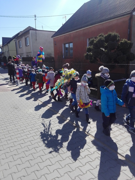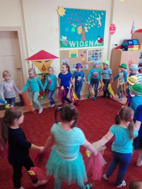 W środę 21 marca wszystkie Dzieci z naszego przedszkola świętowały Pierwszy Dzień Wiosny. Aby podkreślić charakter tego dnia, Przedszkolaki przyszły ubrane na żółto, czerwono i niebiesko. Uroczystości powitania Wiosny rozpoczęły się od części artystycznej, którą przygotowała każda grupa- były tańce, wiersze, zagadki o wiośnie. Mimo wielu atrakcji najbardziej oczekiwaną częścią dnia było wyjście na spacer, podczas którego mogliśmy pożegnać zimę i powitać wiosnę. Dzieci radośnie maszerowały w wiosennym pochodzie, na czele którego widniały Marzanny, które następnie pożegnaliśmy w inny sposób jak mówi tradycja. Nauczycielki przedszkola nie chcą uczyć dzieci zanieczyszczania środowiska, bo nie jest to zgodne z duchem ekologicznej edukacji. Dlatego nasze Marzanny nie zostały spalone lecz „rozebrane” przez dzieci, a następnie wszystkie materiały zostały wrzucone do odpowiedniego kosza na śmieci. Jesteśmy pewni, że starania naszych wspaniałych Przedszkolaków sprawią, że Wiosna zawita do nas na dobre.