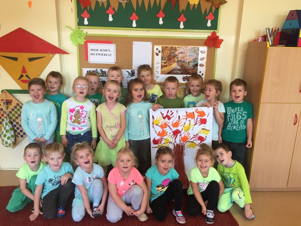 Dzieci z przedszkola wykonały wraz ze swoimi Paniami pracę plastyczną pt. „Jesienne drzewa”. Nie zabrakło też wspólnych gier, konkursów i zabaw ukazujących znaczenie drzew dla człowieka i przyrody.
