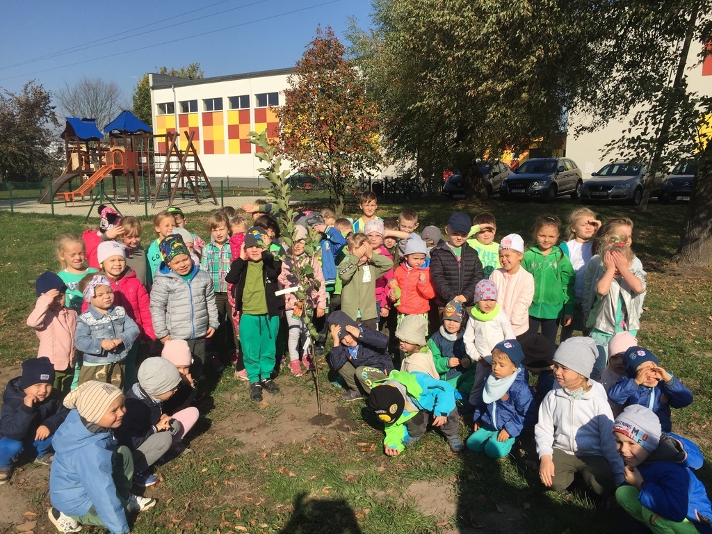 Na zakończenie wszyscy uczestnicy spotkania zasadzili na terenie przedszkolnym drzewko, przy których dzieci złożyły ślubowanie. Przedszkolacy uroczyście ślubowali: dbać o posadzone przez nas drzewka, dbać o wszystkie inne drzewa, nie niszczyć drzew, nie łamać im gałęzi , zwracać uwagę osobom, które tego nie przestrzegają.