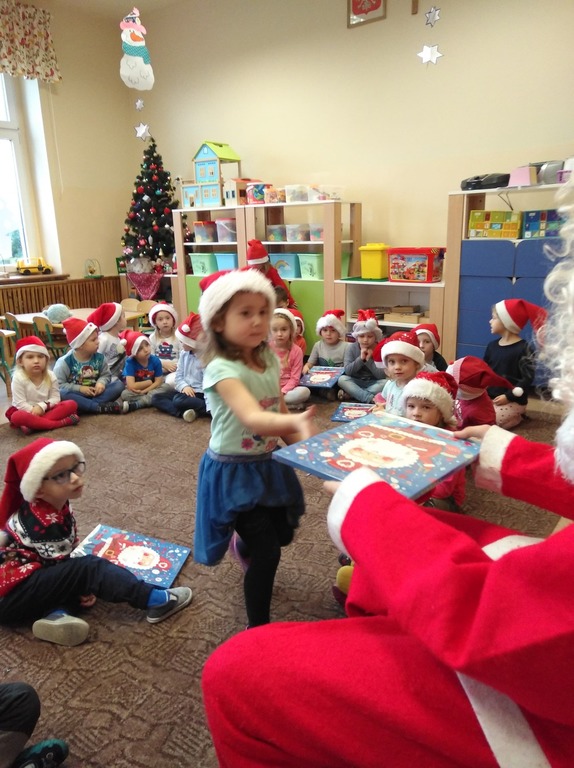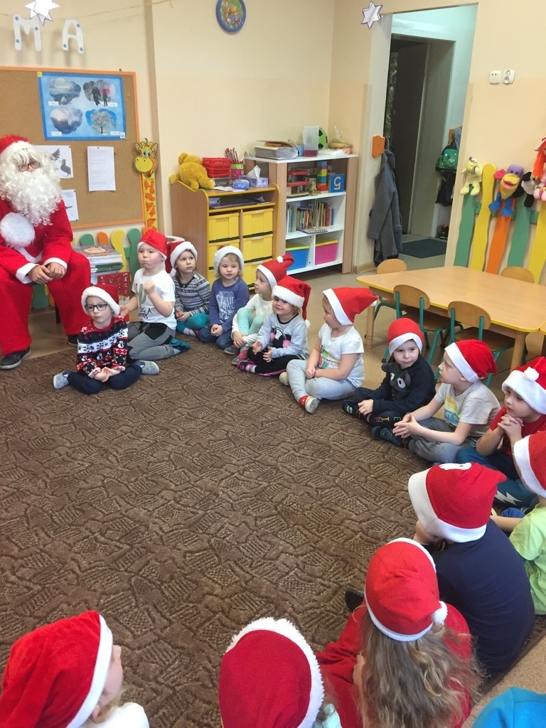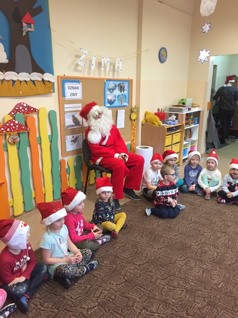 Wizyta Mikołaja w Przedszkolu, to jeden z najbardziej oczekiwanych przez dzieci dzień w roku. Wszystkie grupy pracowicie przygotowały się na to spotkanie. Sale pięknie przystrojone, a przedszkolaki przygotowane z wierszami i piosenkami dla wyjątkowego gościa. Od samego rana dzieci z niecierpliwością wyczekiwały na „Staruszka z siwą brodą”, spoglądały w okna i na drzwi, nadsłuchiwały dźwięku dzwoneczków, które słychać było już z daleka i świadczyły o tym, że do przedszkola zbliża się nikt inny, jak Święty Mikołaj we własnej osobie. Ponieważ nie było śniegu, Mikołaj z workiem pełnym prezentów do wszystkich dzieci przybył piechotą.