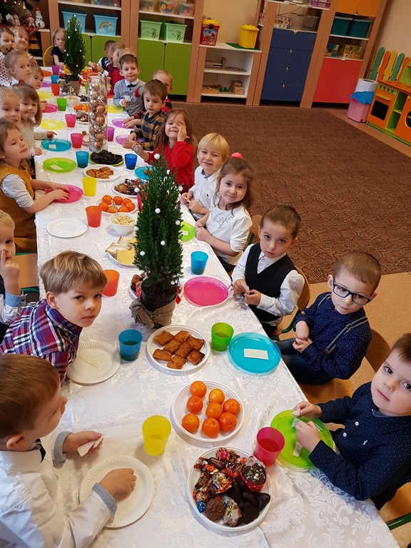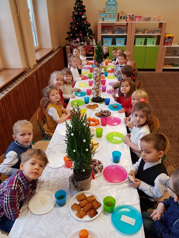 W piątek 21.12.2018r. dzień w przedszkolu był wyjątkowy, bo świąteczny. I już tradycyjnie w tym dniu wszystkie przedszkolaki ubrane były w piękne stroje. Wspólne kolędowanie, dzielenie się opłatkiem, jak również rozmowy przy wigilijnym stole wprowadziły wszystkich w świąteczną atmosferę, pełną radości, nadziei i życzliwości.