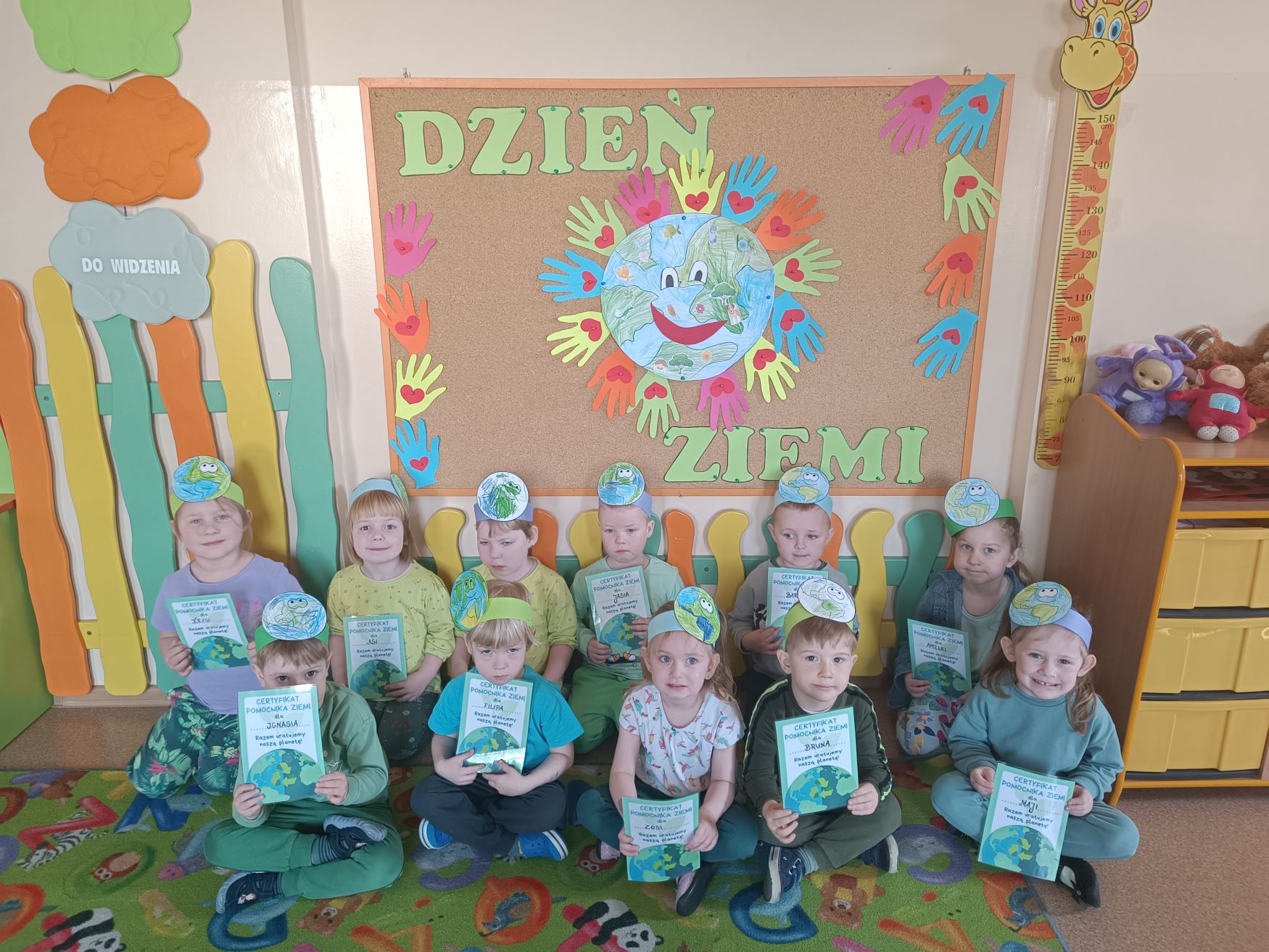 DZIEŃ ZIEMI. Dzieci miały okazję porozmawiać o tym, że Ziemia jest jedyną zamieszkaną planetą i jednocześnie naszym domem, więc musimy o nią dbać jak najlepiej potrafimy np. poprzez segregację śmieci a także ich recykling. Przedszkolaki próbowały ocenić co czuje Ziemia gdy o nią dbamy, a także jakie emocje odczuwa gdy jest niszczona.