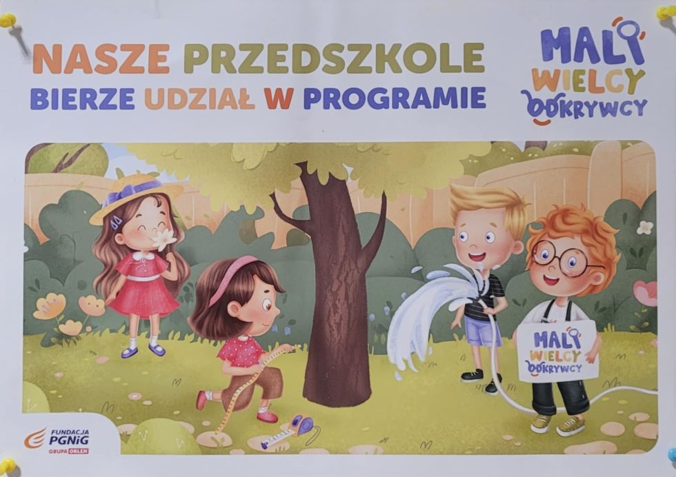 ,,Zerówkowicze'' biorą udział w programie ,,Mali Wielcy Odkrywcy''. Program oparty na idei nauki przez doświadczenie, ma na celu rozbudzenie wśród najmłodszych ciekawości świata oraz pasji do nauki poprzez angażujące i interaktywne zajęcia. Otrzymaliśmy pakiet Naukowy zawierający komplet niezbędnych materiałów do przeprowadzenia zajęć. Już niebawem przedstawimy fotorelację z realizacji zadań z pierwszego etapu programu;)