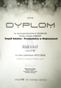 Dyplom od UNICEF