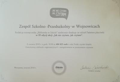 Dyplom za udział w akcji "Jak nie czytam,...